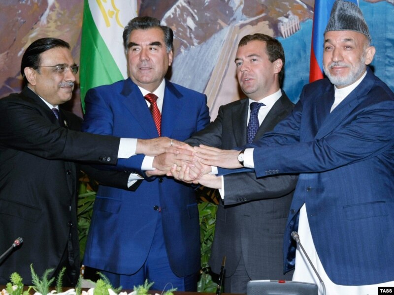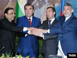 Медведев Дүйшөмбү калаасында Ооганстандын, Пакистандын жана Тажикстандын президенттери менен жолугушууда сүйлөдү.