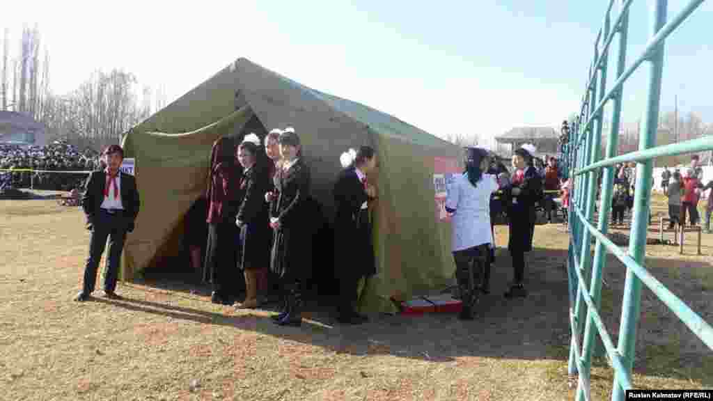 Жалал-Абад облусунун Сузак районундагы №2 мектепте Улуттук коопсуздук мамлекеттик комитетинин облустук башкармалыгынын кызматкерлери күч структуралары менен биргеликте барымтага алынган окуучуларды бошотууга жана террористерди жок кылууга арналган аскердик ыкчам машыгуу өткөрүүдө. Анын максаты түрдүү күтүүсүз коркунучтарга облустук күч кызматкерлеринин даярдыгын текшерүү болуп саналат. Аскердик даярдыктагы операцияга 200 күч кызматтарынын өкүлдөрү тартылып, миңге чукул жашоочулар катышты.