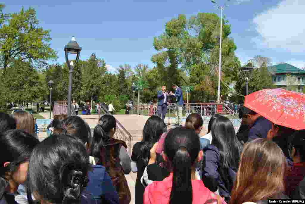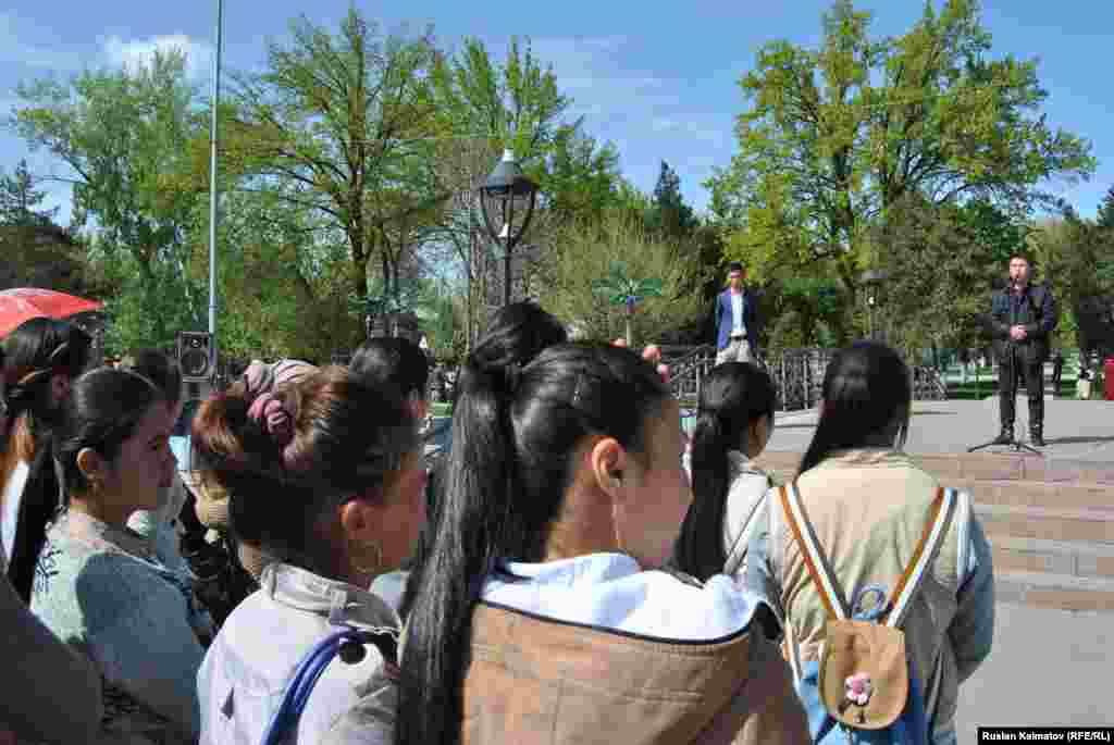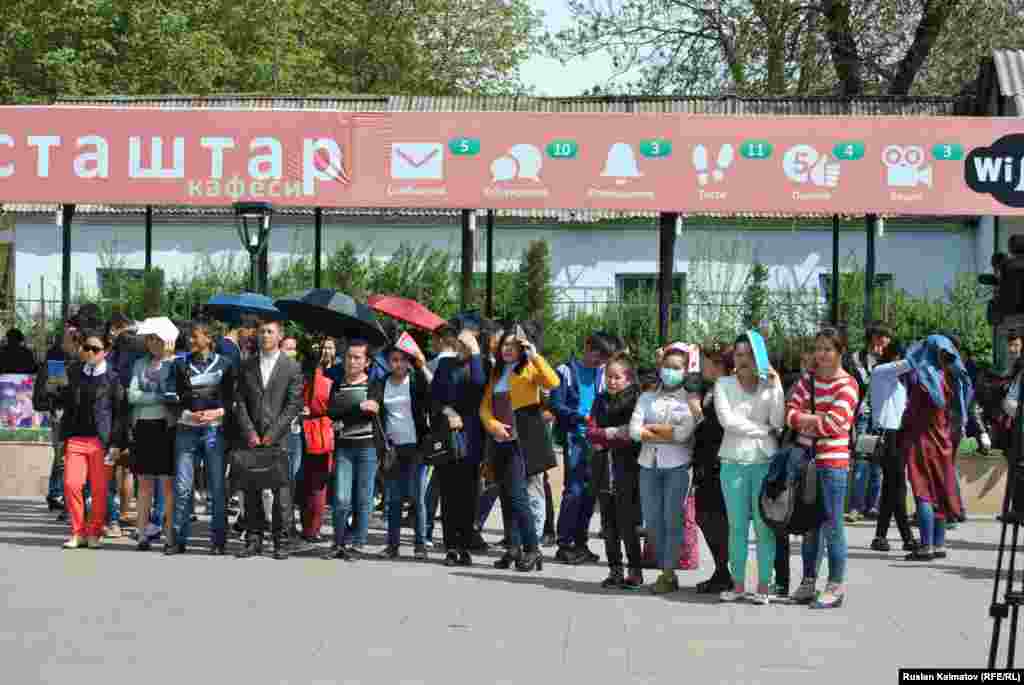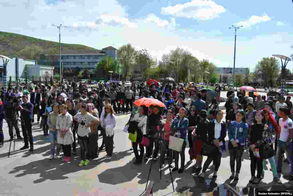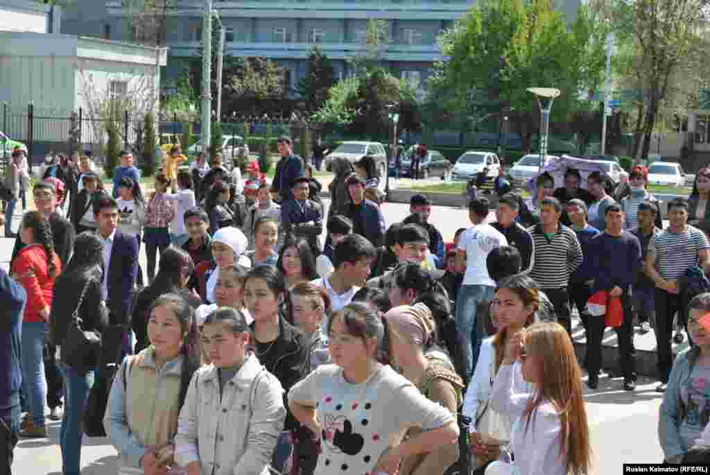 Бүгүн шаардын борбордук аянтында жогорку окуу жайдын студенттеринин катышуусунда өлкөдө орун алып жаткан ар кандай нааразылык митингдерге каршы жыйын өттү.