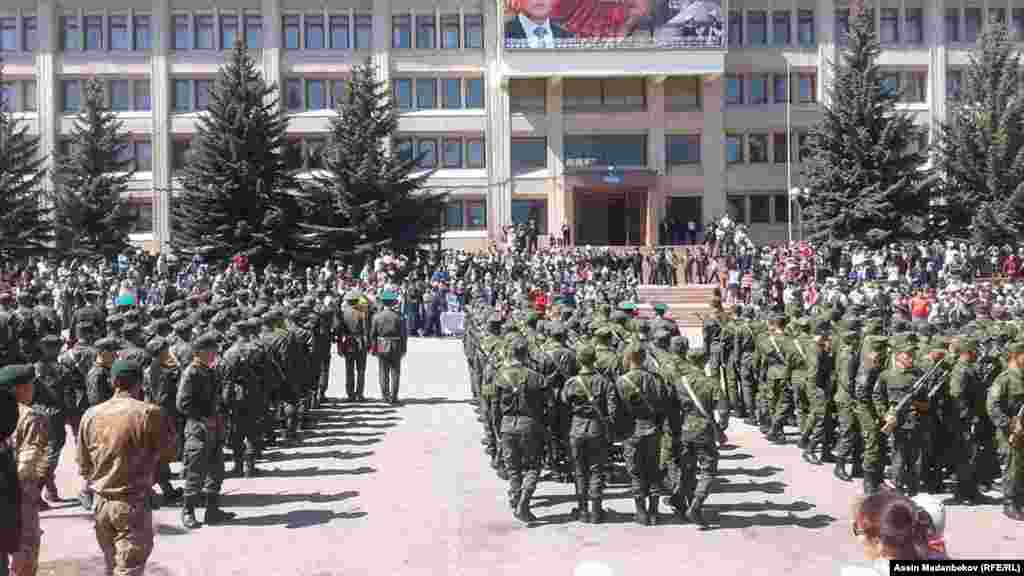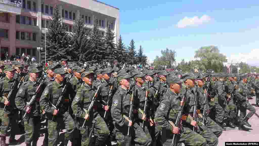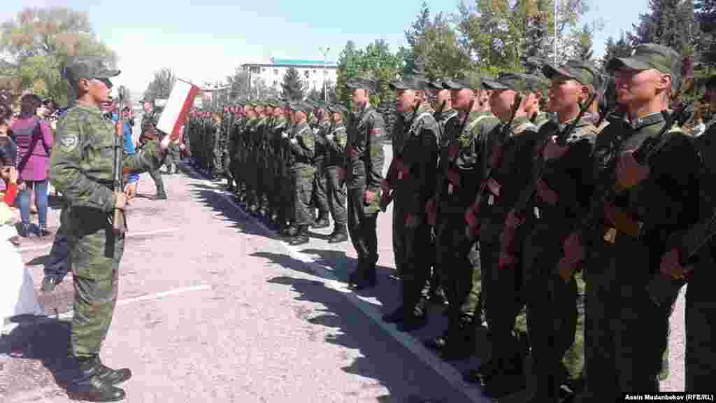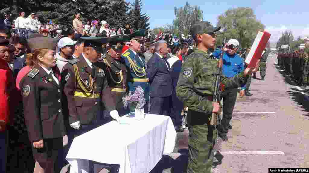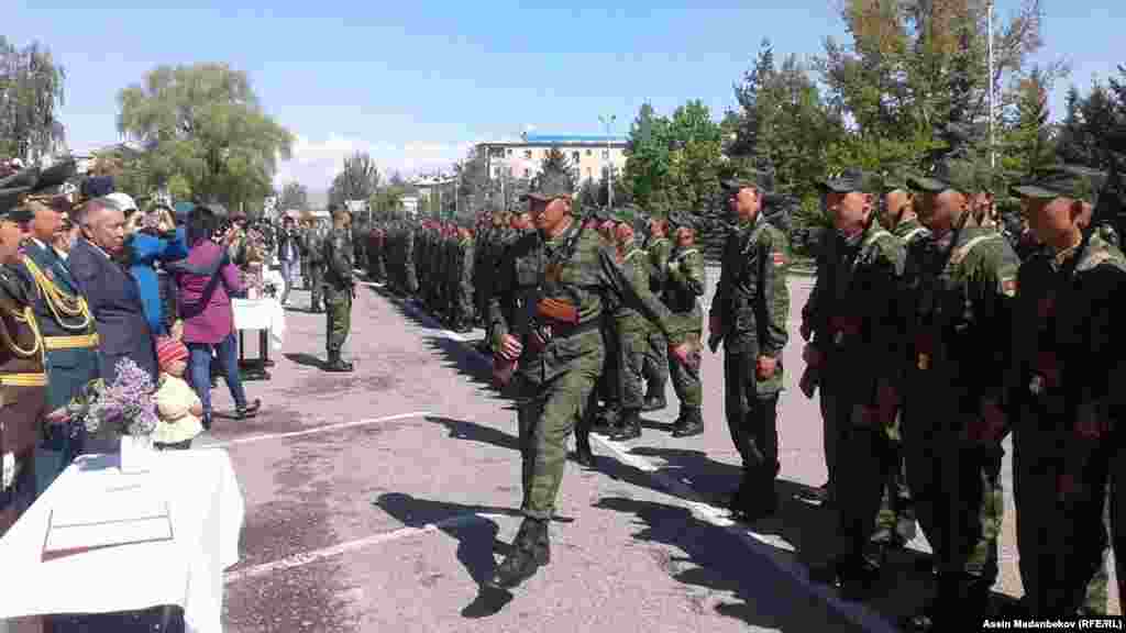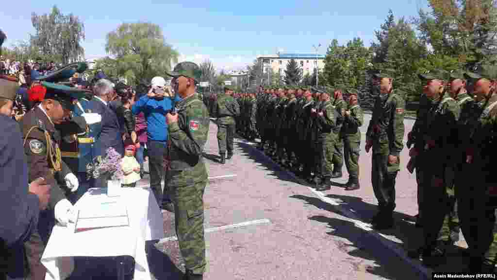 Бүгүн 5-май Конституция кунүнө карата, Каракол шаарынын борбордук аянтында 247 жаш жоокер салтанаттуу түрдө аскердик ант беришти. Мамлекеттик чек ара кызматынын Ысык-Көл облусу боюнча башкармалыгынын башчысы Руслан Закировдун айтымында, бул жоокерлер Бишкек шаарынан, Нарын жана Ысык-Көл облусунан келген. Ысык-Көлдө Мамлекеттик чек ара кызматынын окуу борборунда 60 күндүк атайын аскердик окуудан өткөндөн кийин Нарын, Талас, Чүй облустарына, Балыкчы шаарларына кызмат өтөөгө кетишет.