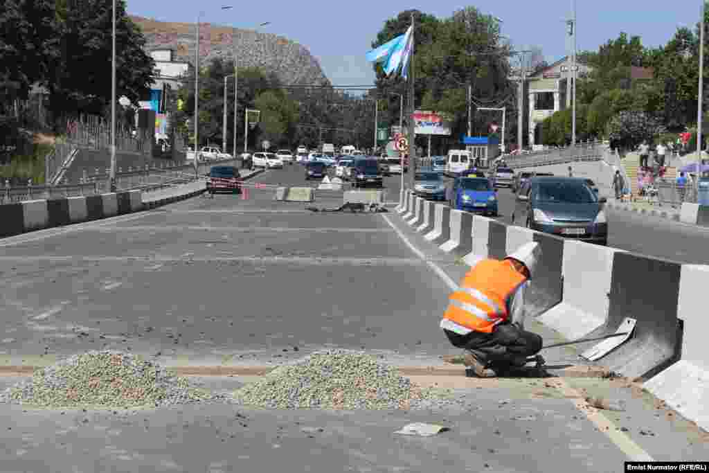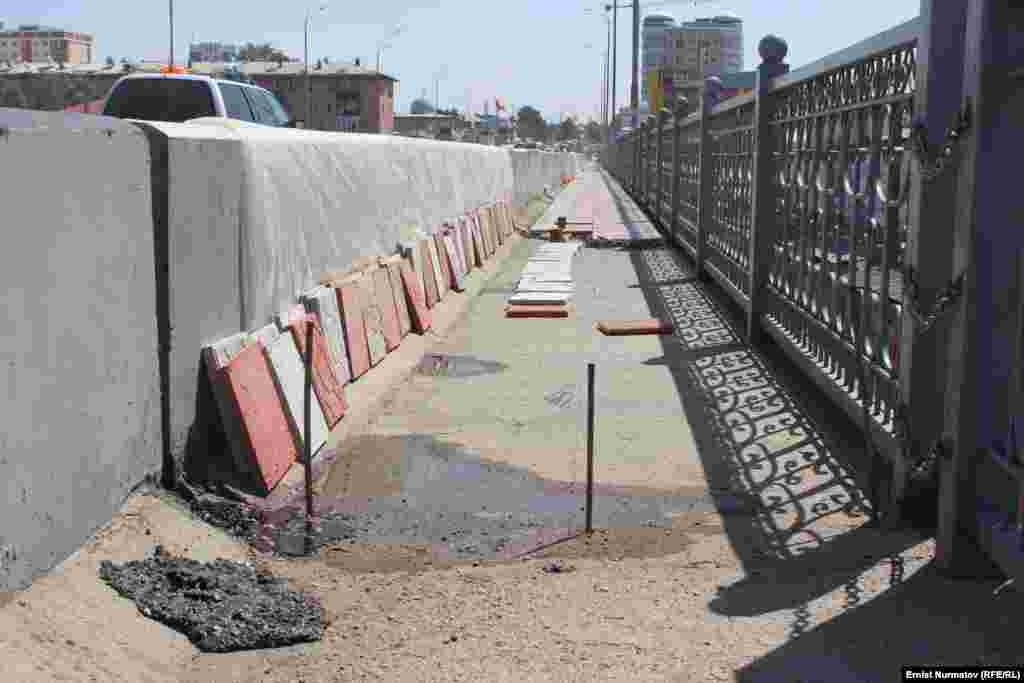 Оштун Навои көчөсүндөгү эстакада көпүрөнүн плиталары туташкан жерлер оңдолуп, кайрадан асфальт басыла баштады. Бул шаардыктар арасында көпүрөнүн сапаты жөнүндө шекшинүүнү күчөттү.