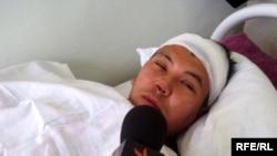 - Граждандык кийимчен үч жигит алдыман чыгып, бирөө мени көкүрөккө бир тепти. Мен жатып калдым. Анан үчөөлөп тепкилеп киришти. Бирөө бутун ээгиме коюп, кекиртегиме бутун такап тилиңди ач деп муунтту.