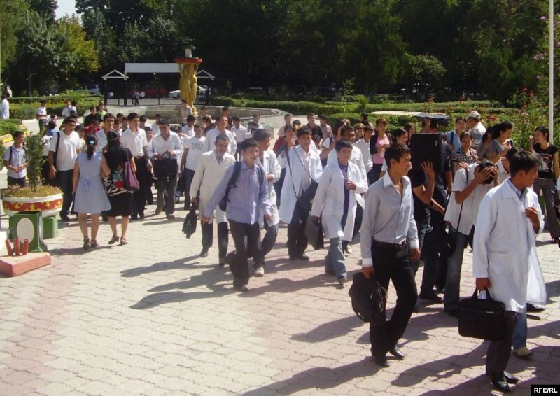 ОшМУнун медициналык факультетинин студенттери окуу шарттарын жакшыртуу талабы менен нааразылык акциясына чыгышты.