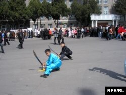 -Биз өзүбүздүн лицейдин кол өнөрчүлүк буюмдарын алып, элдерге көрсөтүп, сатканы келгенбиз. Элдин маанайы жакшы. Кичинеден болсо дагы буюмдар өтүп жатат.