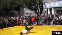 Жоогазын ыңкылабынын беш жылдыгын белгилөө иш-чаралары бул жылы Бишкек шаарынын эски аянтында уюштурулду. Аянтта күндүзгү саат он бирлер чамасында борбор шаардагы кесиптик орто окуу жайлардын окуучулары жасаган буюм-тайымдардын көргөзмөсү ачылды.