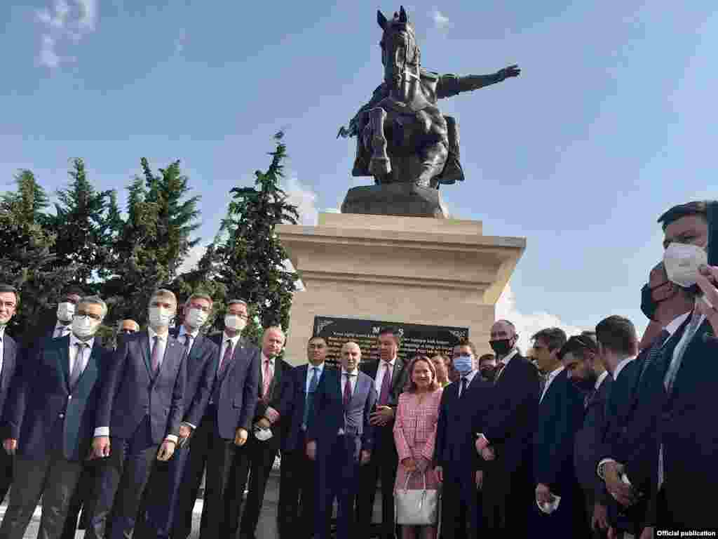 Иш-чарадан бир күн мурун, 30-августта президент Садыр Жапаров Түркиянын президенти Режеп Тайып Эрдоган менен телефондон сүйлөшкөн. Анда Жапаров Эрдоганга 31-августта Анкарада ачыла турган Манастын эстелиги жана куттуктоосу үчүн ыраазычылык билдирген.
