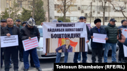Сот жүрүп жаткан маалда журналисттин тарапташтары аны бошотуу талабы менен акция өткөрүштү.