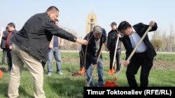 Бишкектин Түштүк дарбазасындагы Жеңиш паркында мамлекет башчысы Алмазбек Атамбаев сакура көчөтүн отургузуп жатып, өлкөнү сакурага салыштырды.