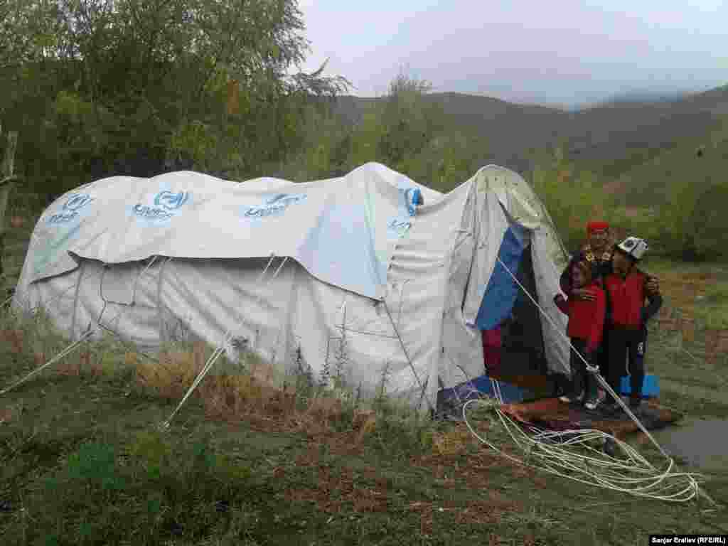 Чоң-Алайда жазында жер титирөөдөн жабыркаган турак жай ээлеринин айрымдары суук түшкөнүнө карабай чатырларда баш калкалоодо.