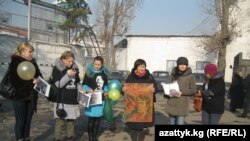 Бишкекте бир катар укук коргоочулар абакта жаткан кесиптеши Азимжан Аскаров, казакстандык укук коргоочу Евгений Жовтис жана беларус укук коргоочусу Алес Беляцкийди колдогон акция өткөрүштү.