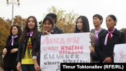 Бишкек мэриясынын алдында майып активисттер “Тоскоолдуксуз шаар үчүн” аттуу акцияны өткөрдү. Алар майыптарга талаптагыдай шарттар түзүлбөй жатканын айтып, бул кенемтени башкалаадан толтуруу керек деп эсептешет.