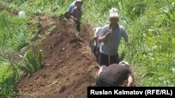 Тоо башындагы булактын суусун айылга жеткирүү оңой болгон жок. Техника бара албаган жерлерди айылдыктар биригип, колдоруна кетмен-күрөк кармап казышты.