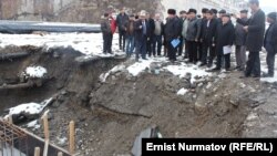 Мелис Мырзакматов жаңы көпүрөнүн курулушун баштоо салтанатында. Ош, 5-октябрь, 2013.