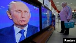Президент Путиндин эл менен баарлашуусунда өлкөнүн ар кайсыл бурчтарынан, залдын өзүнөн да адамдар суроолорду берип жатышты.