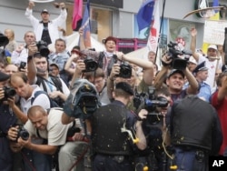 Тимошенконун жактоочулары соттун сыртында. Киев, 17-август.